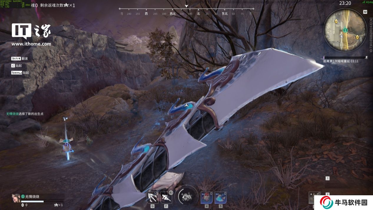 在 2K 分辨率 + 高畫質 + DLSS 質量檔 + 幀生成 / 低延遲下,游戲平均幀數(shù) 217 幀,游戲平均延遲 20ms;