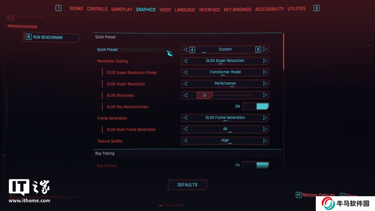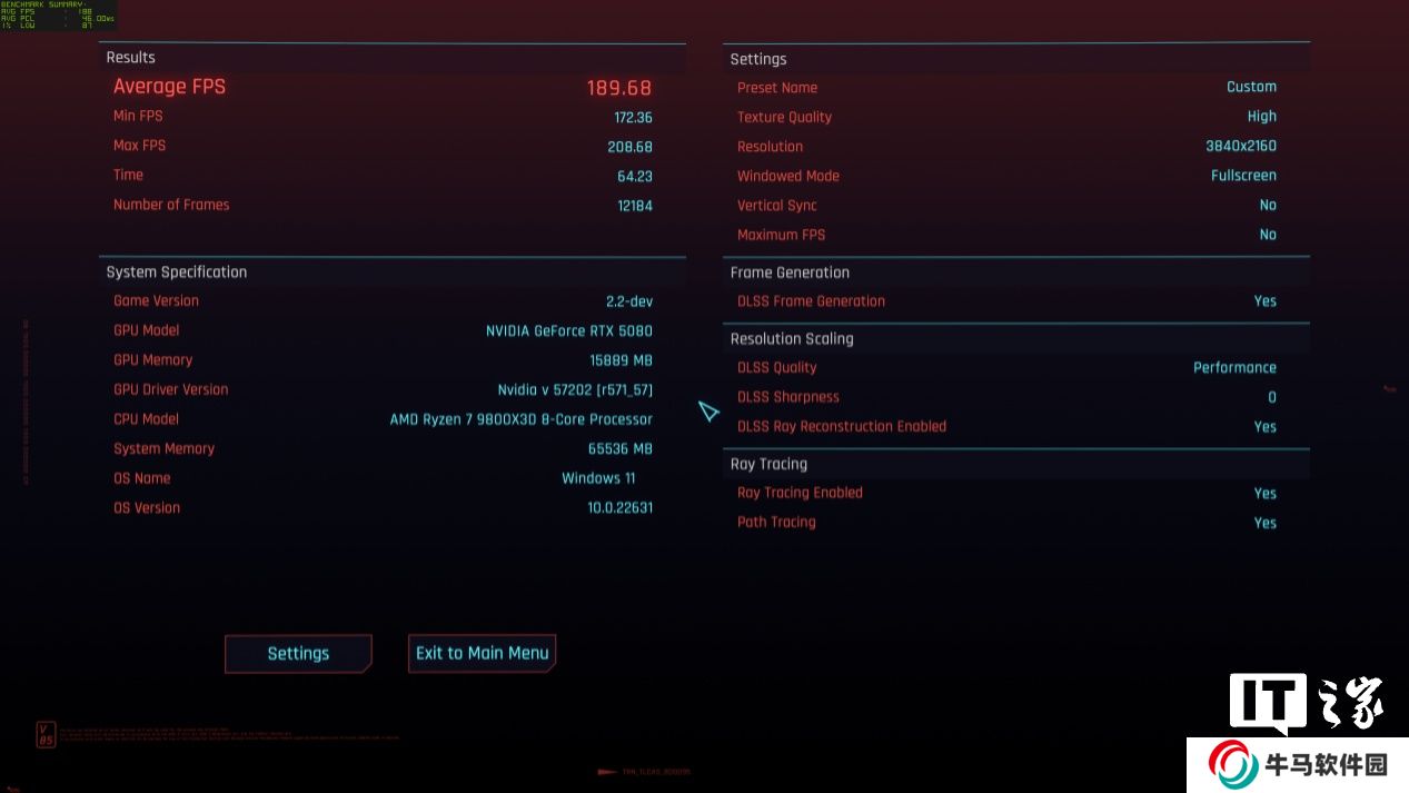 這次的游戲實測稍微有點不同,雖然 NVIDIA 官方宣稱首批支持 DLSS 4 的游戲高達 75 款,不過目前要想在游戲中順利開啟 DLSS 4 相關選項還需要通過 Steam 的測試版通道激活,所以多數(shù)主流游戲我們依舊測試的是 DLSS 3 和幀生成的表現(xiàn),并在最后以《賽博朋克:2077》這款游戲單獨為大家呈現(xiàn) DLSS 4 技術的實際表現(xiàn)。