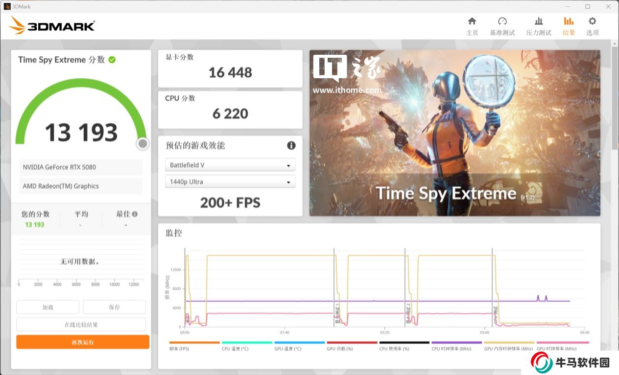 而在 3D Mark Time Spy Extreme DX12 測試中,技嘉 GeForce RTX 5080 GAMING OC 16G 分數(shù)達到了 16448 分,作為對比 RTX 4080s 公版的分數(shù)為 14541 分,提升幅度同樣為 13%。