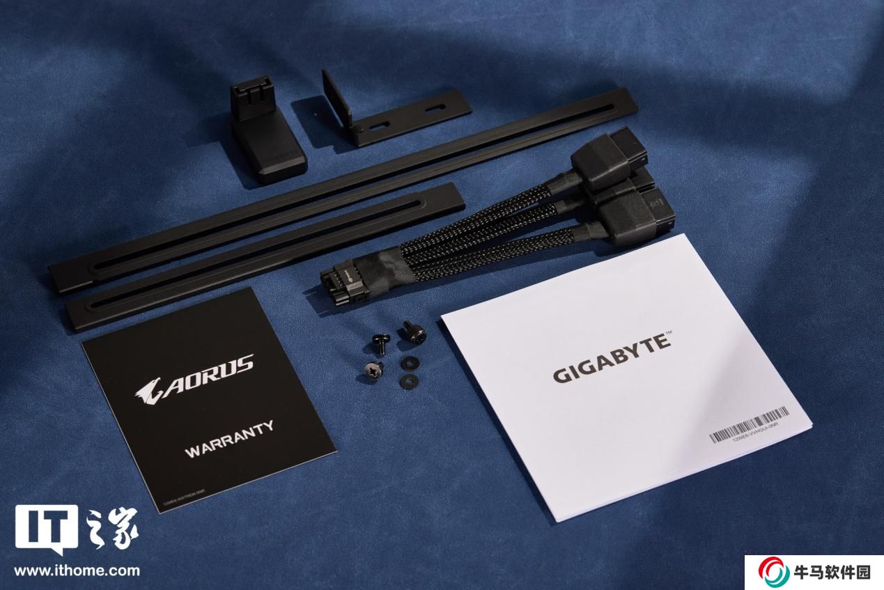 技嘉魔鷹 RTX 5080 除了一根轉 3*8pin 電源轉接線外,還附送了顯卡支架,支架支撐部分有兩種尺寸可以安裝,以適配不同的機箱。