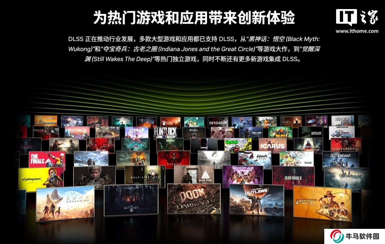 英偉達宣稱,當下已有超 75 款支持 DLSS 幀生成技術的游戲與應用,在 GeForce RTX 50 系列 GPU 上可升級為 DLSS 多幀生成技術。50 系顯卡正式發(fā)售后不久,眾多主流 3A 大作也將適配 DLSS 4,其中涵蓋《心靈殺手 2》《奪寶奇兵:古老之圈》《真三國無雙:起源》《黑神話:悟空》《星球大戰(zhàn):亡命之徒》以及《寂靜嶺 2:重制版》等熱門游戲。