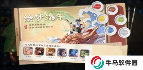 1、玩家在活動期間,每日可通過登錄游戲、參與對局、對局后點贊等任務(wù)收集紅、黃、藍、白4種基礎(chǔ)顏料,合成端午顏色為畫作上色。