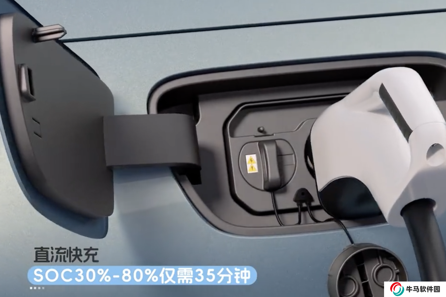該車(chē)支持直流快充、交流慢充和家用電源隨車(chē)充三種充電方式,快充模式下,30%-80% 的充電時(shí)間為 35 分鐘。車(chē)輛不支持外放電功能。