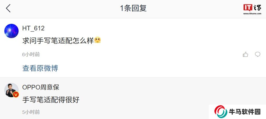本站注意到,有網(wǎng)友在評論區(qū)中詢問手寫筆功能的適配情況,周意?;貜头Q“手寫筆適配得很好”。結(jié)合前代機型相關(guān)功能適配情況來看,F(xiàn)indN5 折疊屏新機有望繼續(xù)支持手寫筆功能。