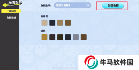 2、接著在“一鍵配色”界面中點擊“創(chuàng)建色板”開始編輯。
