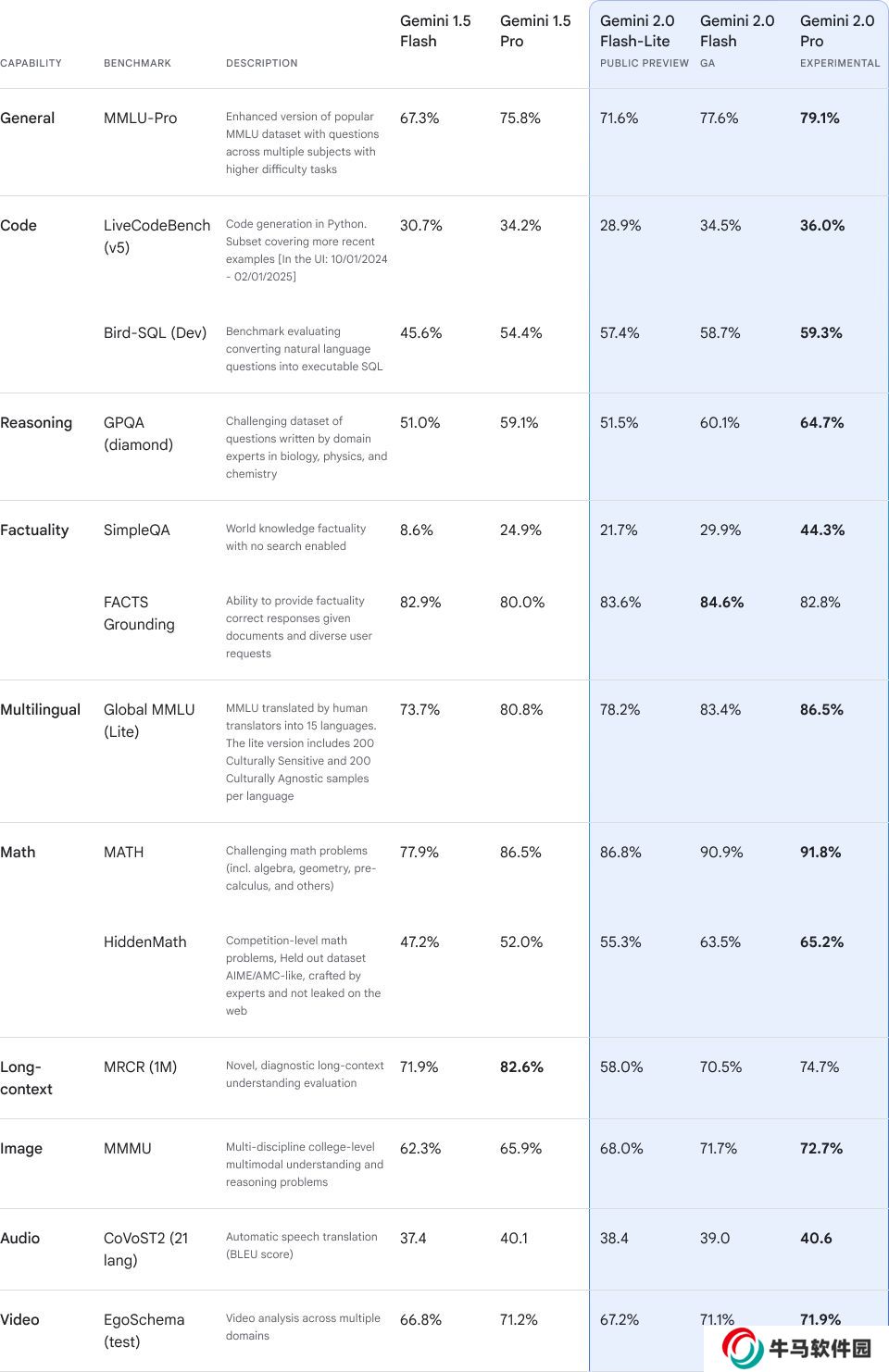 開發(fā)者現(xiàn)可在 Google AI Studio 和 Vertex AI 中體驗這一實驗版模型,Gemini 高級用戶也可在桌面和移動端訪問。本站附上相關(guān)性能對比如下: