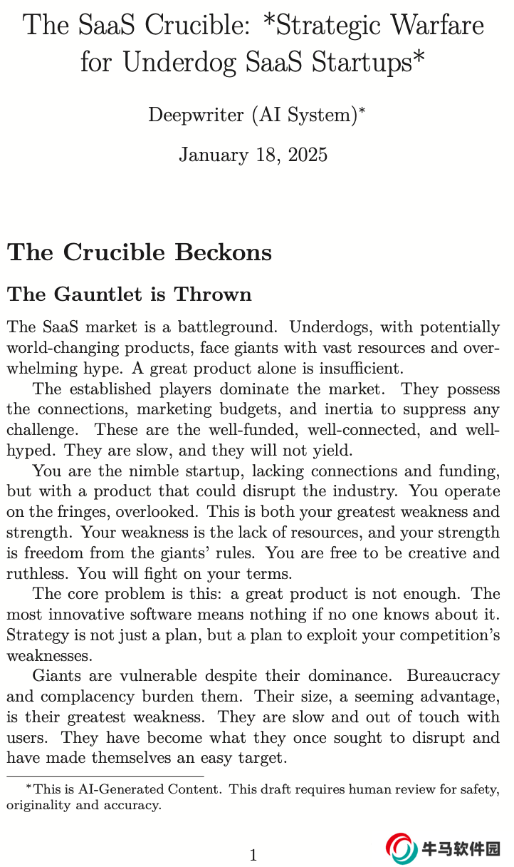 之所以寫一部小型 SaaS 公司如何崛起的書籍,也是因為創(chuàng)作者恰好有一家小型 SaaS 公司,他正在閱讀生成的書籍。