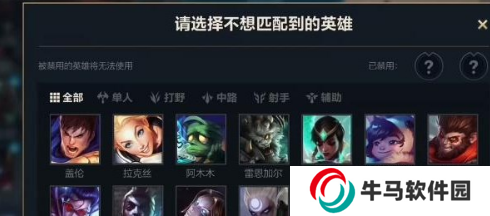 3、玩家可以選擇不想匹配到的英雄,一共可以選擇兩位,選中后就不會在對局中遇到他。
