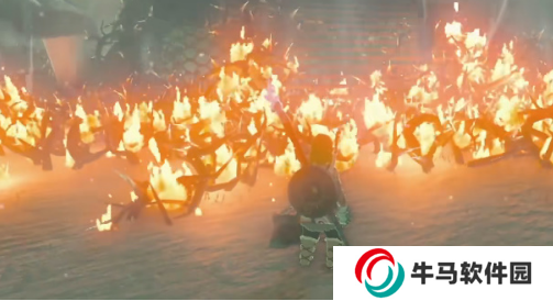 3、對準(zhǔn)這些荊棘處,然后將附加了火焰果的箭射進(jìn)去,這周圍就是都會燃燒起來,等待燒完有了路就行了。
