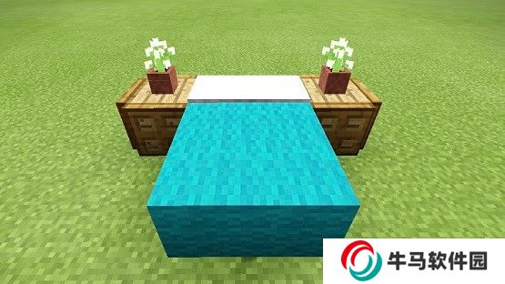 2.用木板和活板門做床頭柜,玩家可以用花盆裝飾;