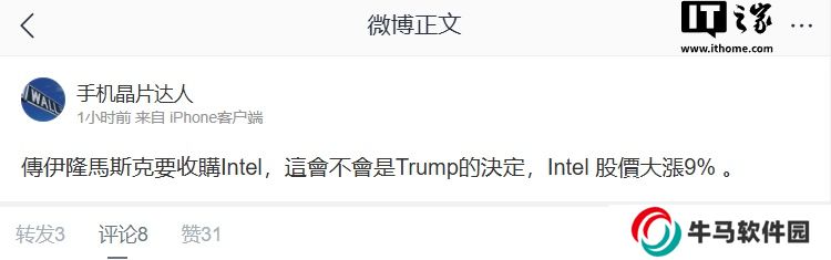 與此同時(shí),來自中國臺(tái)灣半導(dǎo)體行業(yè)的博主@手機(jī)晶片達(dá)人 表示,他聽到的傳聞是“馬斯克要收購英特爾”,懷疑與特朗普有關(guān)。