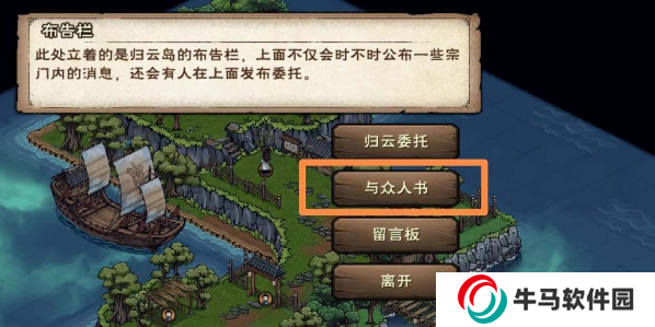 13、在歸云島(10,10)觸發(fā)后續(xù),獲得500閱歷,在布告欄(6,6)可查看「告眾人書」。