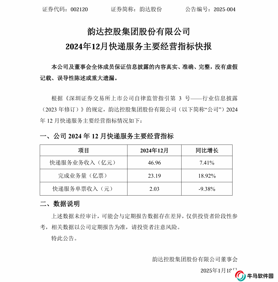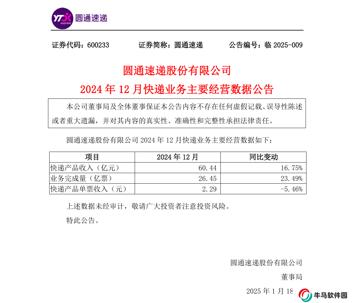 本站 1 月 17 日消息,申通、圓通、韻達(dá)多家快遞公司今日公布2024 年12 月經(jīng)營(yíng)簡(jiǎn)報(bào),本站匯總?cè)缦拢?/p>