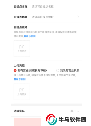 5、登錄后,填寫自提點(diǎn)名稱、地址、照片,再提交相關(guān)資料認(rèn)證,全部完成后點(diǎn)擊下面的“提交”即可。