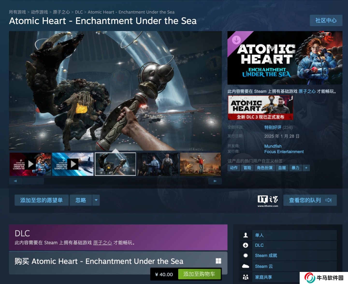 本站 1 月 30 日消息,科幻動作游戲《原子之心》旗下第三款DLC“深海迷情(Enchantment Under the Sea)”現(xiàn)已正式上線,玩家可在雙生舞伶意識的陪伴下再續(xù)主線故事,潛入切洛梅綜合體水下基地尋找戒指,拯救全人類。除了新增劇情外,該DLC還添加了“兩個手套技能”以及兩件新武器。