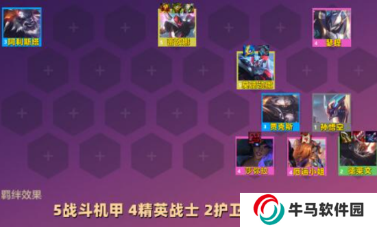 2、陣容羈絆:3超級(jí)英雄4AI程序2斗士2愛心使者