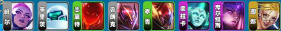 1、陣容構(gòu)成:亞索+艾克+赫卡里姆+瑟莊妮+蔚+劫+薇恩+尼菈+佐伊