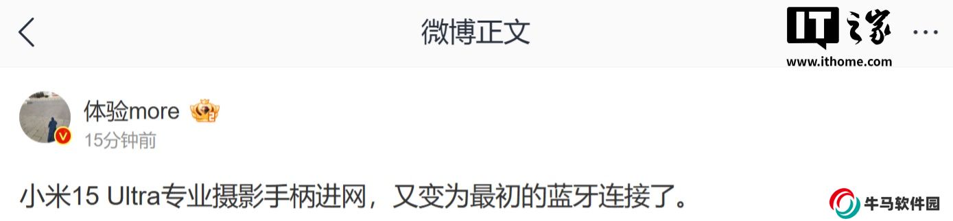 博主 @體驗more 稱這是小米 15 Ultra 專業(yè)攝影手柄。