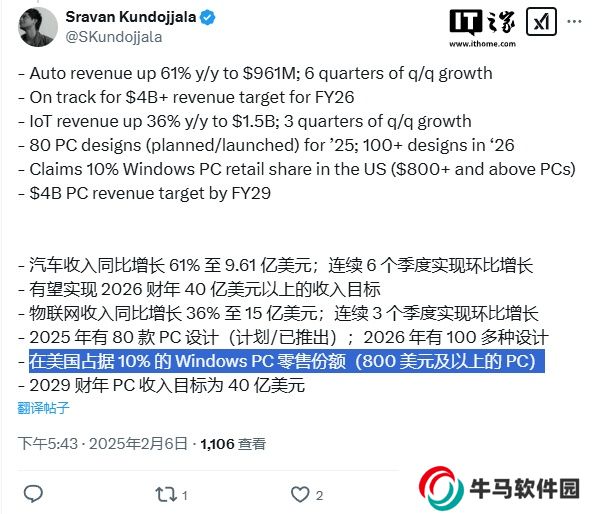 《高通 2025 財(cái)年第一財(cái)季營(yíng)收 116.69 億美元,凈利潤(rùn)同比增長(zhǎng) 24%》