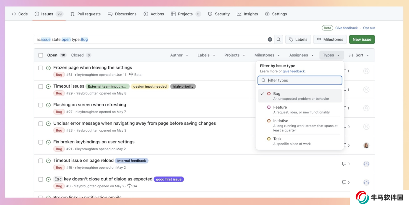 本站 1 月 20 日消息,GitHub發(fā)文,宣布對(duì)項(xiàng)目的Issue功能進(jìn)行改進(jìn),新增子議題(Sub-issues)、議題類型(Issue Types)以及高級(jí)搜索(Advanced Search)功能,進(jìn)一步便于開(kāi)發(fā)者和用戶交流討論。