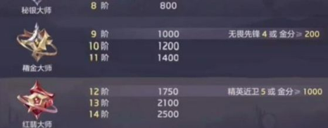 1、曙光英雄段位等級分為青銅,白銀,黃金,鉑金,鉆石,大師,王者七個等級。
