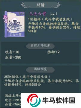 2、法天象地和三頭六臂能夠在增加我們暴擊概率的同時(shí)增加暴擊傷害,滅心魔種也能夠提高我們的暴擊傷害,解尸法的復(fù)活能夠增加容錯(cuò)率,也可以換成金雞啼鳴,這都根據(jù)玩家自己的靈獸做出相應(yīng)的調(diào)整。