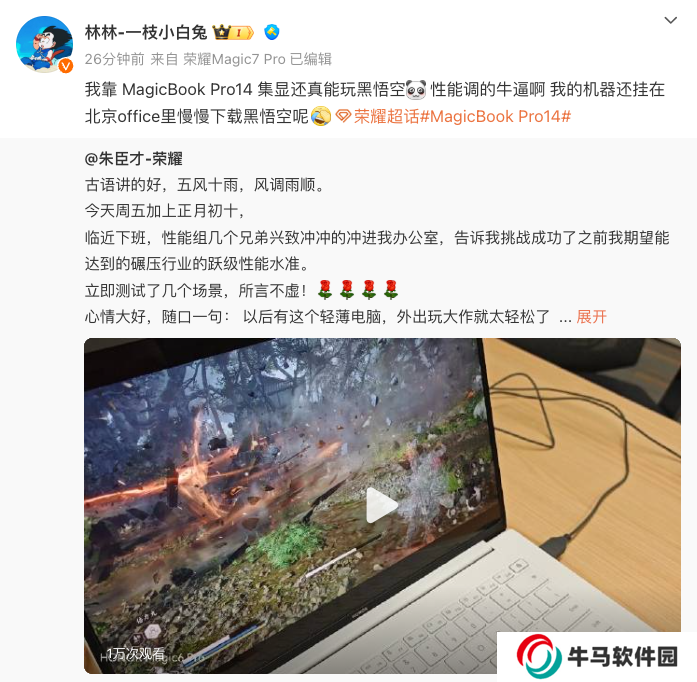 本站 2 月 7 日消息,榮耀 PC 產(chǎn)品線總經(jīng)理 @朱臣才-榮耀 今日分享了榮耀新品筆記本的游戲?qū)崪y視頻,并稱性能組同事挑戰(zhàn)成功了之前他期望能達到的碾壓行業(yè)的躍級性能水準(zhǔn)。