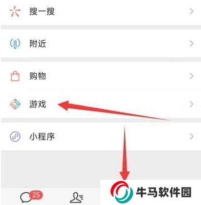 1、打開(kāi)微信,導(dǎo)航欄下方發(fā)現(xiàn),點(diǎn)擊游戲。