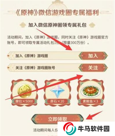 5、接著向下滑動(dòng),找到原神微信游戲圈專(zhuān)屬福利,加入關(guān)注之后就可以領(lǐng)取。