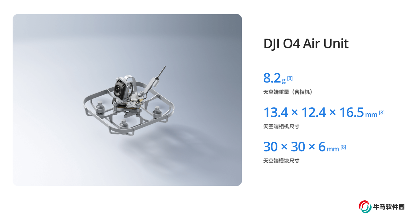 據(jù)官方介紹,DJI O4 Air Unit 系列實現(xiàn)圖傳性能再次飛躍,帶來了更高清、更低延時、更遠距離的全新數(shù)字圖傳方案。DJI O4 Air Unit 重量僅 8.2 克,搭載 1/2 英寸影像傳感器,可拍攝 4K / 60fps 視頻。