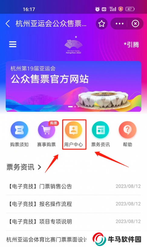 3. 完成注冊后,回到票務(wù)通的主頁面,點(diǎn)擊【用戶中心】,填寫觀賽人信息和地址,提前填好信息搶票快人一步!