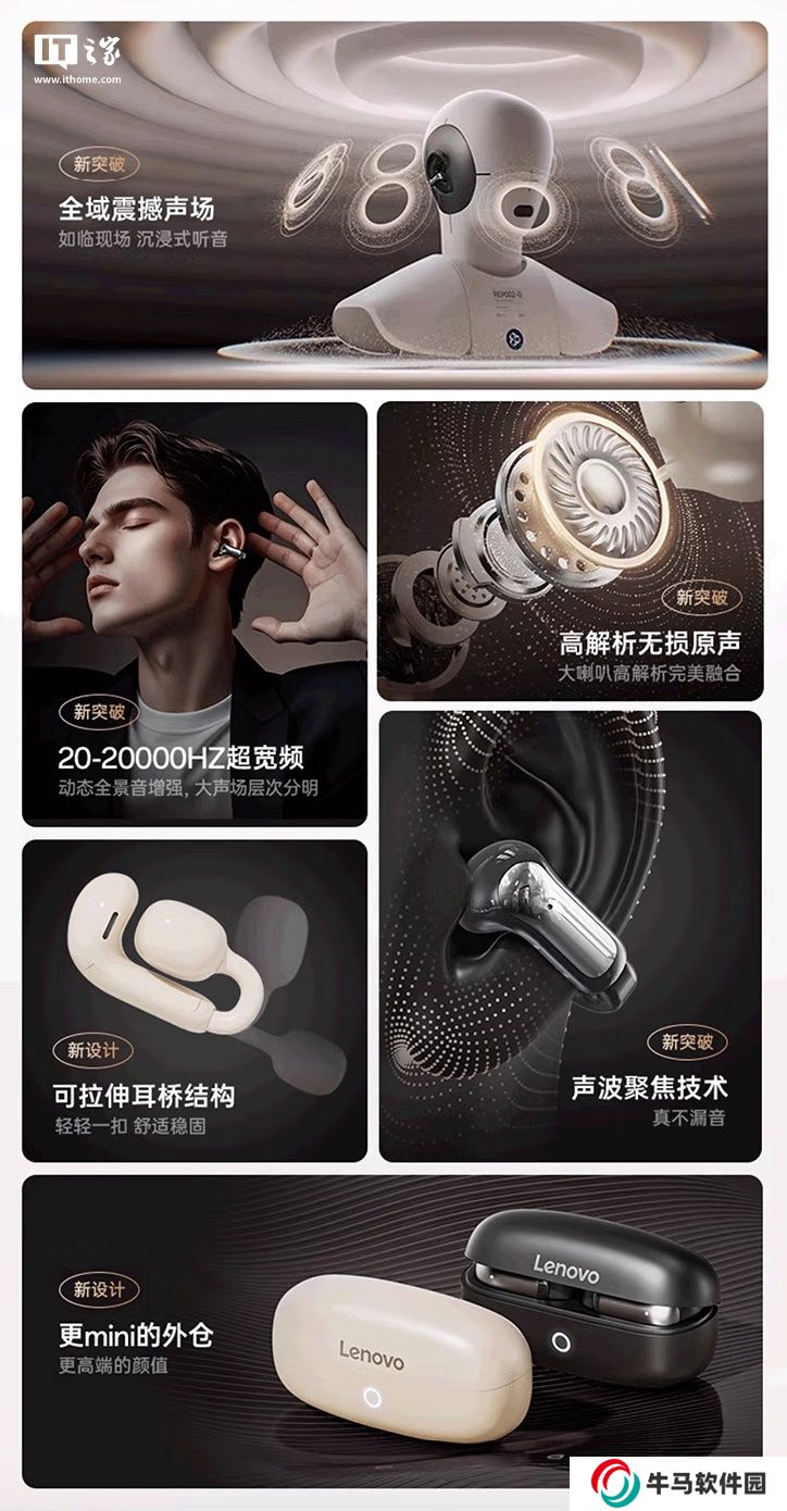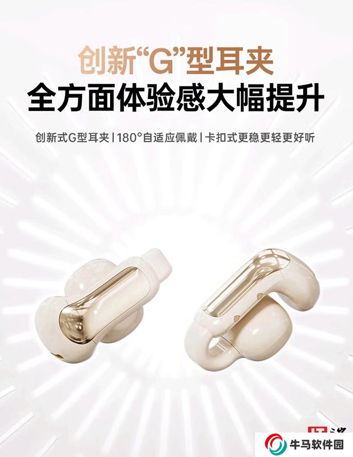 這款耳機(jī)采用 G 型耳夾設(shè)計(jì),號(hào)稱(chēng)擁有沉浸式全景音聲場(chǎng),耳橋結(jié)構(gòu)支持拉伸,可貼合耳形降低漏音。