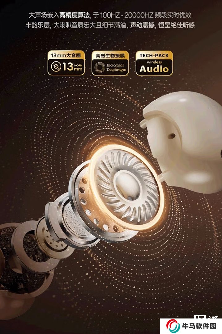 該耳機(jī)配備13mm音圈,支持定向傳音技術(shù),耳機(jī)本體配備50毫安時(shí)電池,續(xù)航6小時(shí),在配備充電盒的情況下續(xù)航至高24小時(shí)。