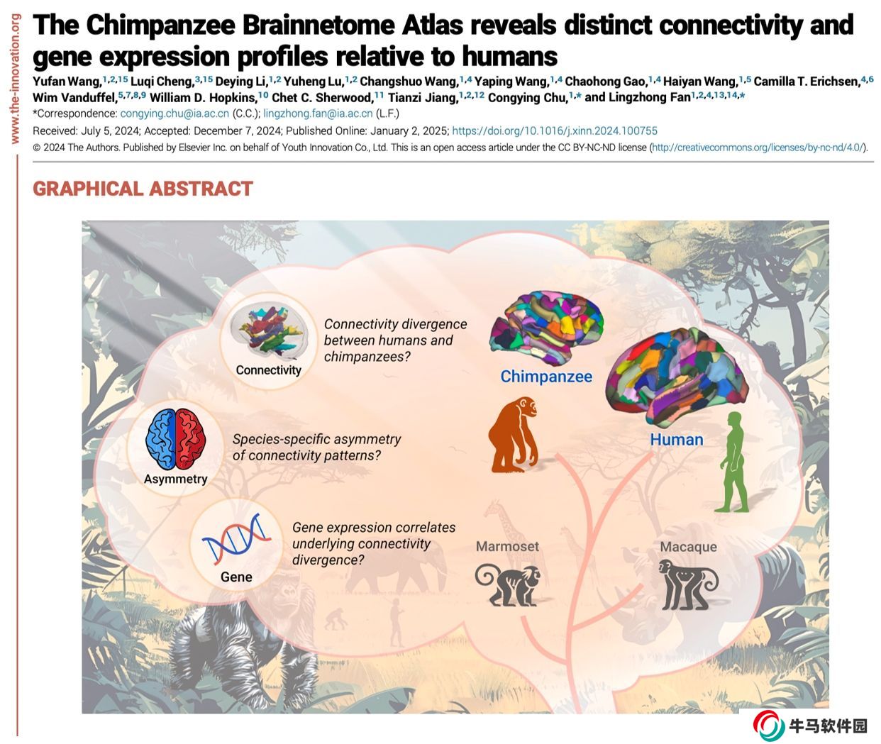 Yufan Wang, Luqi Cheng, Deying Li, Yuheng Lu, Changshuo Wang, Yaping Wang, Chaohong Gao, Haiyan Wang, Camilla T. Erichsen, Wim Vanduffel, William D. Hopkins, Chet C. Sherwood, Tianzi Jiang, Congying Chu, Lingzhong Fan. The Chimpanzee Brainnetome Atlas reveals distinct connectivity and gene expression profiles relative to humans, The Innovation, 2025, DOI:?10.1016/j.xinn.2024.100755.