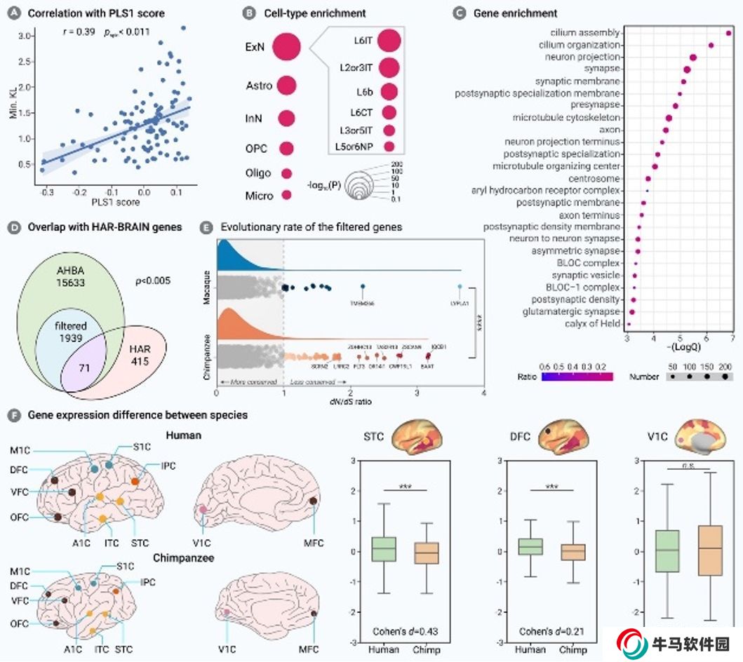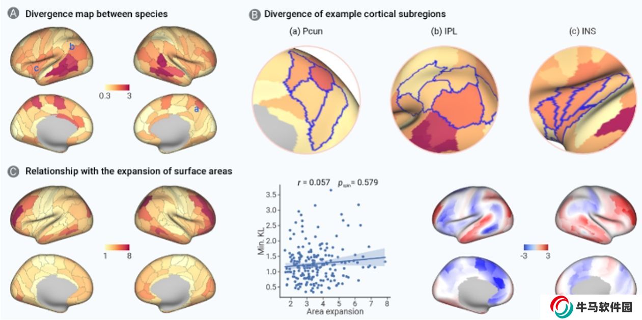 研究發(fā)現(xiàn)了物種間連接性不對稱的區(qū)域,并發(fā)現(xiàn)這些區(qū)域高表達的基因富集在對皮層投射回路和突觸形成至關(guān)重要的細胞類型中,提示這些基因在神經(jīng)回路演化中發(fā)揮了重要作用。