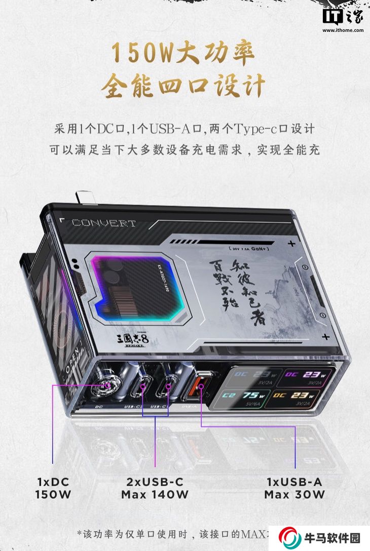 本站 1 月 25 日消息,努比亞紅魔現(xiàn)已為其氘鋒騰龍版帶屏150W充電頭推出《三國志8》游戲聯(lián)名版,整體規(guī)格與前年10 月發(fā)售的標(biāo)準(zhǔn)版一致,采用1A + 2C + 1DC加屏幕設(shè)計,定價999元。