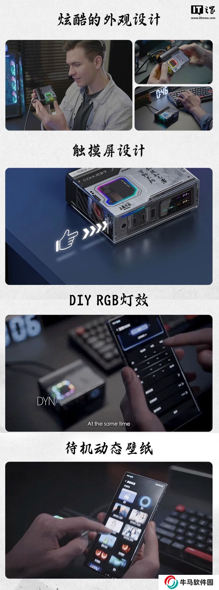 這款充電頭側(cè)面印有《三國志8》IP聯(lián)名圖案,同時繼承了氘鋒騰龍版充電頭彩屏特色,該屏幕為觸控設(shè)計,可顯示即時功率,同時支持RGB燈效及動態(tài)壁紙。