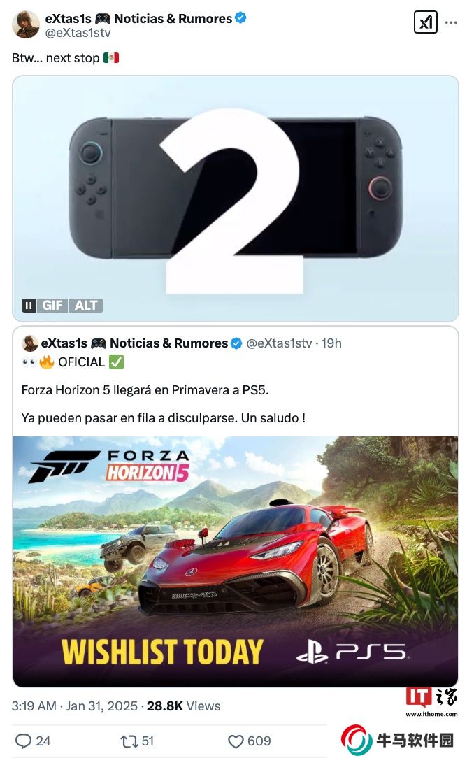 本站 1 月 31 日消息,微軟今天宣布《極限競速:地平線5》將登陸索尼PS5平臺,而目前消息源 eXtas1s 透露該作也將登陸任天堂Switch2,結(jié)合此前微軟 Xbox 部門負(fù)責(zé)人菲爾?斯賓塞“會為 Switch2 提供支持”言論,相應(yīng)信息有一定可信度。