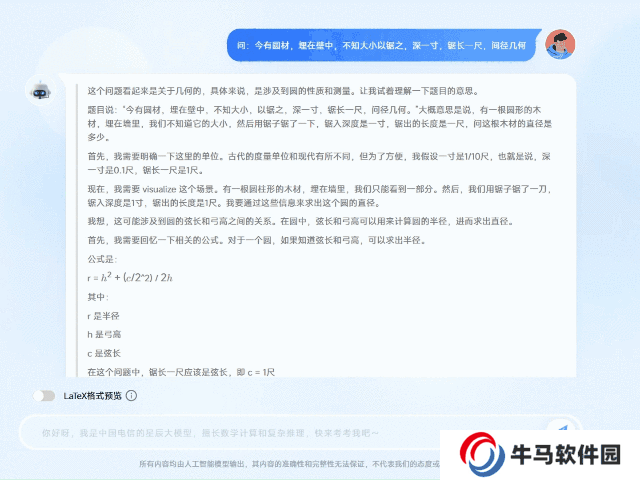 據(jù)介紹,在此過(guò)程中,TeleAI-t1-preview 可將形象思維與抽象思維結(jié)合,對(duì)所涉及的場(chǎng)景進(jìn)行具象化思考,輔助理解題目。不僅如此,其還能夠嚴(yán)謹(jǐn)?shù)剡M(jìn)行古今單位換算。