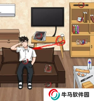 3、點(diǎn)擊旁邊的鞋柜得到一把螺絲刀,然后拖到平板電腦上,得到一張透明的墊紙板;