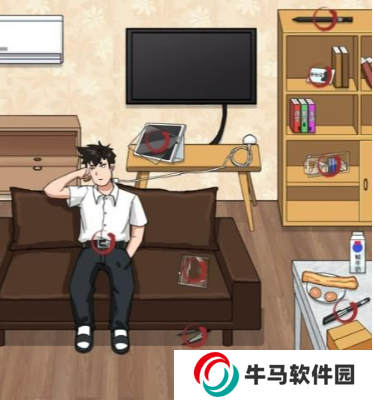 2、左邊的柜子下方的剪刀拿起來(lái)在礦泉水上劃動(dòng)一下,就可以得到一瓶透明礦泉水;