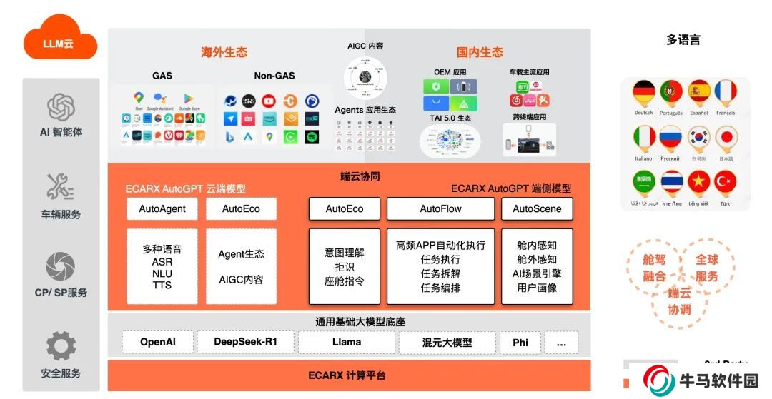 ECARX AutoGPT 是億咖通科技在通用大語言模型的基礎(chǔ)上結(jié)合出行場景構(gòu)建的車載大模型,它集成了四大核心能力:“AutoAgent AI 智能體、AutoFlow AI 任務(wù)執(zhí)行、AutoScene AI 場景引擎、AutoEco AI 服務(wù)生態(tài)”,具備自然語言交互、自主理解、多模態(tài)感知、任務(wù)規(guī)劃、記憶和使用工具的能力,能夠自動執(zhí)行復(fù)雜任務(wù)。