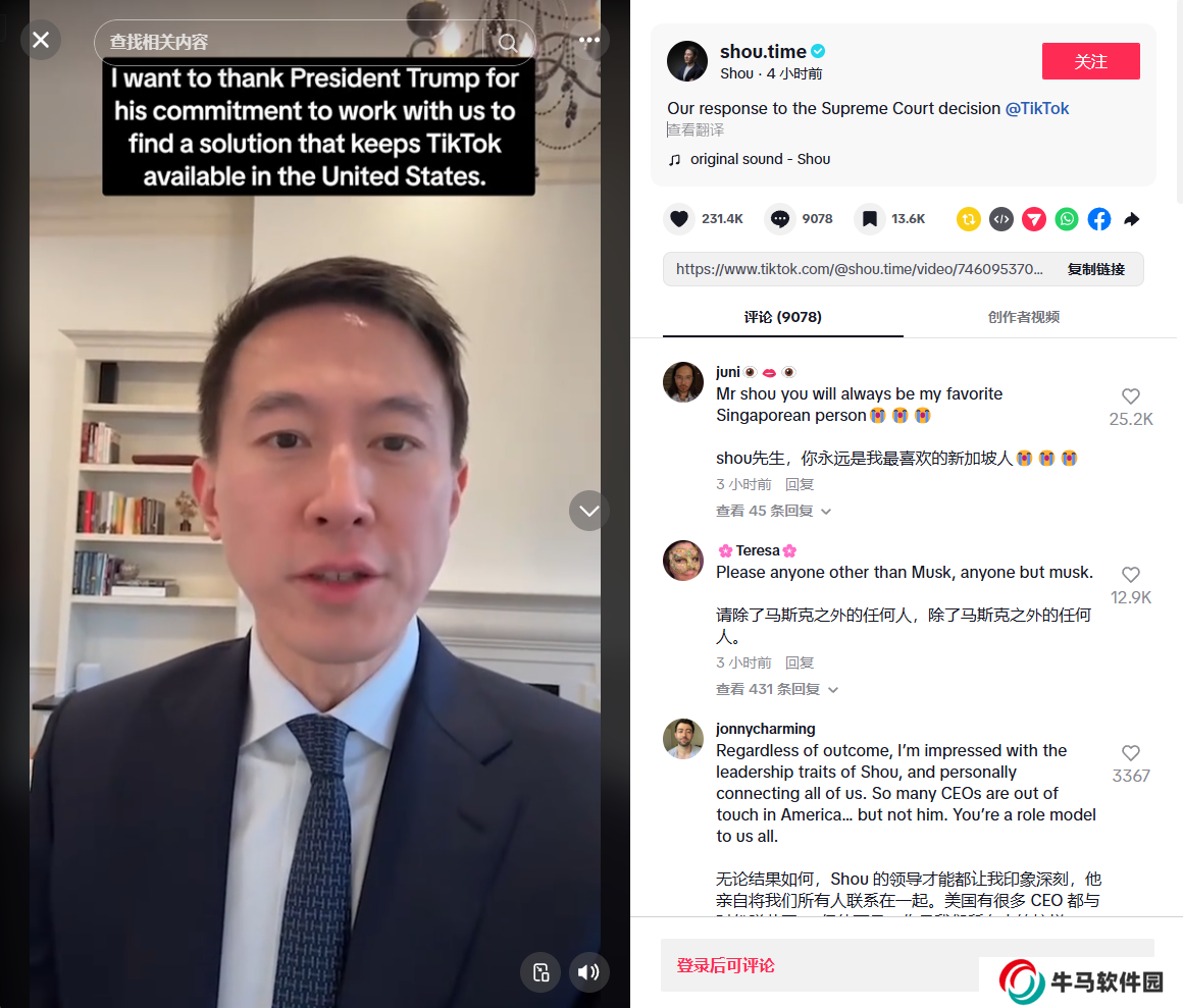本站 1 月 18 日消息,四個小時前,TikTok 首席執(zhí)行官周受資通過 TikTok 發(fā)布了一條視頻,稱其將盡全力確保 TikTok 平臺未來繼續(xù)繁榮。