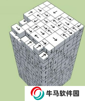 3、接著玩家可以通過旋轉(zhuǎn)方塊的方式,對方塊的整體去進(jìn)行查看,多個(gè)方面查看能夠消除的箭頭。