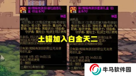 6月30日—8月3日期間,土罐魔盒更新,限期加入2種極品道具。