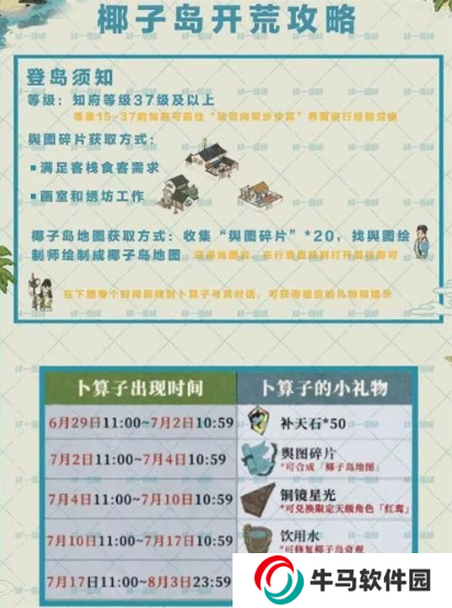 1.江南百景圖椰子島解鎖需要收集輿圖碎片*20,且知府等級(jí)到37級(jí)以上,才可以合成椰子島地圖。