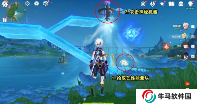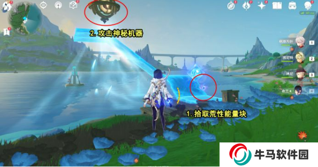 2、到達之后拾取荒性能量塊攻擊神秘機器并將出現(xiàn)的敵人消滅掉;