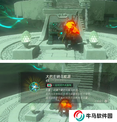 4、進入塔奇伊哈巴諾神廟內(nèi)部后,我們直接打開下圖的寶箱,可以獲得:大的左納烏能源。