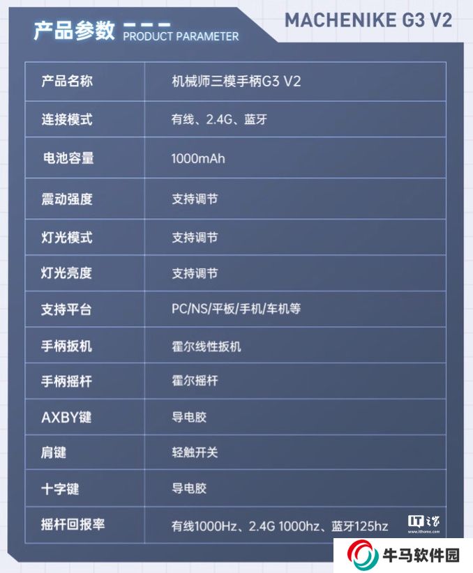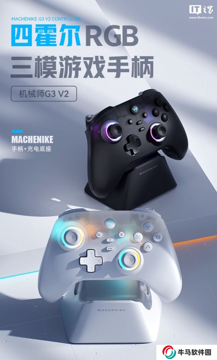 本站 1 月 24 日消息,機(jī)械師現(xiàn)已在京東上架一款型號為 G3 V2 的三模游戲手柄,該手柄主打“四霍爾系統(tǒng)、雙 1KHz回報(bào)率”,定價(jià)為99元,另可選帶有充電底座的套裝版本,定價(jià)為129元。