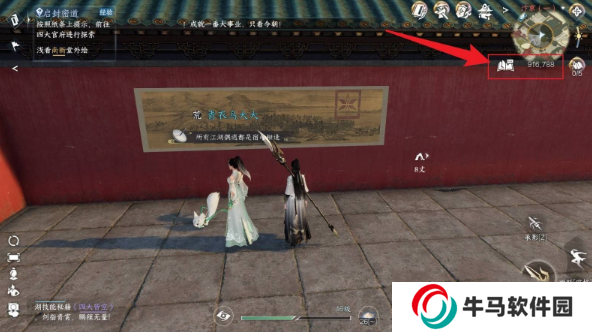 1、進(jìn)入游戲,移動(dòng)到汴京坐標(biāo)(916,788)。